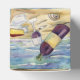 Uma garrafa de vinho tinto inclina-se contra um copo de vinho de meia cheio na praia. Uma bandeja de queijo está pronta para ser cortada, e um segundo vinho está pronto para ser enchido. As conchas estão misturadas na praia de areia. Ondas de oceano de cor pastel suave estão saltando ao fundo. Pintura feita em aquarela. Faça uma festa especial de praia de vinho tinto a favor de caixas de presentes com o seu próprio texto e imagens usando a opção "Personalizar" para feriados personalizados e ocasiões especiais de vida vinho presentes de arte temida!