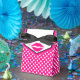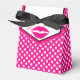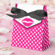 Bonito caixa-presente giro feita em um padrão de bolinhas rosa e branco quente, com um flap frontal branco preto e rosa esboçado. Gráficos de um impressão de batom cor-de-rosa, no flap e texto rosa lendo Obrigado. Excelente caixa de presentes para aquele pequeno obrigado especial que você dá para suas damas de honra ou como caixas de favores para qualquer evento feminino.