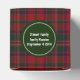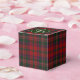 Caixa de presentes de evento de na moda feito no padrão tradicional de xadrez de Stewart tartan, clã vermelho e verde. Um disco redondo verde e branco, no topo, tem texto branco personalizado pronto para personalizar. Uma caixinha adorável para doces e qualquer outra coisa que queiras dar aos teus convidados. Excelente para reuniões familiares, casamentos ou qualquer festa.