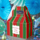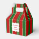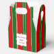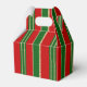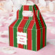 Uma caixa de favoritos colorida em forma de natal feita em um padrão vermelho, verde e ouro brilhante com aspecto striped. Gráficos de uma área de texto decorativo e branco dourado, na frente, tem texto personalizado vermelho pronto para personalizar. Excelente para os favores de festas de Natal e embrulho para pequenos presentes de Natal.