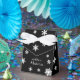 Esta caixa de presentes de na moda é um preto de meia-noite, acentuado com flocos de neve e belos guiões de fita, que é fácil de personalizar.
