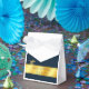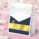 Esta caixa de presente de ouro e marinho para a sua festa de casamento ou convidados pode ser personalizada com os nomes da noiva e do noivo e a data do seu casamento. O texto pode ser personalizado com quase tudo o que você quiser.