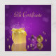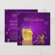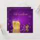 Glamorosa ilustração mágica de Natal: Caixa de presentes de ouro com espuma ao lado de ouro e bolas de árvore de natal roxas e pérolas de ouro num fundo elegante de boque roxo.