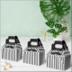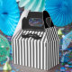 Caixa de presente de padrinho de casamento na moda feita em uma cinza e padrão listrado branco, com alças pretas. Gráficos de bigode preto, na frente, tem texto branco lendo Obrigado. Excelente caixa de presentes para aquele obrigado especial que você dá para seu melhor homem e padrinhos de casamento. Caixa de presentes de excelente para nossos balões de 6 oz.