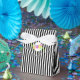 A caixa de presentes especial de ocasião favorita da chic feita em um padrão listrado preto e branco. Trabalho de arte gráfico de flores bonito coloridas decoram um disco branco, na aba frontal da caixa. Personalize para adicionar seu próprio texto ou sair como está, para um pacote adorável para seus convidados do partido.