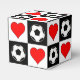 Caixa de presentes para jogadores de futebol: uma bela caixa de presentes para jogadores de futebol, treinadores e fãs! Um padrão sem descontinuidades, preto e branco, cobrir em todos os lados, com bolas de futebol preto e branco nos quadrados pretos e um coração vermelho brilhante nos quadrados brancos. Adiciona um toque especial aos presentes de aniversário, presentes de mais velho ou qualquer outro presente especial para amantes de futebol!