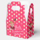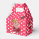 Brilhante gráfico, vermelho-claro, com bolinhas e bailarina gráfica segurando flores, obrigado que você favoreça caixas de presentes. Ideal para os favores de aniversário de suas garotas. Personalize com seu próprio nome e idade de aniversário. Atualmente, lê Obrigados para vir à 10ª Festa de aniversário de Melanie. Arte original e design por Sarah Trett.