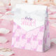 Caixa de favorecimento de chá de fraldas bonito, com elefante giro soprando padrão de bolhas em forma de coração. Bonito, roxo, design de elefante chá de menina. Personalize com seu nome de honra de chá de fraldas. Ilustrada e projetada exclusivamente por Sarah Trett.