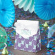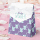 Caixa de favorecimento de chá de fraldas bonito, com elefante giro soprando padrão de bolhas em forma de coração. Bonito roxo, design de elefante chá de bebê azul aqua. Personalize com seu nome de honra de chá de fraldas. Ilustrada e projetada exclusivamente por Sarah Trett.