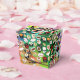 Caixa de presente personalizada decorada com círculos arco-íris e várias formas de sushi