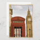 A clássica caixa vermelha e a Rua. A torre de Stephen, que guarda a icônica campainha do Big Ben que toca no quarto da hora.