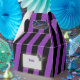 Personalize esta caixa de tratamento com listras roxas e pretas com um nome na frente. Exclua o nome de um rótulo de vazio ou exclua o rótulo se você não quiser personalização.