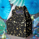 Mantenha todas as suas guloseimas e guardas para os seus convidados embrulhados numa caixa divertida. Este fundo preto com estrelas por toda parte colocará qualquer um no espírito festivo.