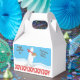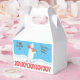 Biscoito ou caixa de tratamento divertidos de Natal para doar produtos assados ou assados, doces e doces, biscoitos de cachorro e muito mais, personalizados com sua escolha de texto e carateres, apresentando um urso polar em esquis com uma placa de biscoitos de chocolate.