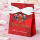 CAIXA FAVOR DO Trio-PARTIDÁRIO Natal, Estilo de tenda Três Nozes-Nozes de pé lado a lado sobre um padrão vermelho do livro de Natal. O primeiro pregador está vestido de azul e branco com embelezamentos de ouro. O pregador central está vestido de vermelho e ouro com embelezamentos de ouro. O terceiro preguiçoso está vestido de verde e branco com embelezamentos prateados. Os piratas estão nos lados frontal e traseiro da caixa junto com uma imagem dourada que diz: Feliz Natal. Ambas as peças de texto dourado podem ser deixadas como estão ou removidas se você não quiser. Uma área de texto está no lugar na parte inferior da frente para uma nota ou assinatura personalizada. Edite o texto branco para dizer o que quiser. Exclua o texto se ele não for desejado. Cada um desses piratas está disponível separadamente em vários presentes e produtos Zazzle. Está disponível a coordenação de presentes e suprimentos de partidos Zazzle.