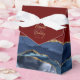 Esta elegante caixa de favoritos moderna apresenta uma marinho azul de aquarela agata design com brilho dourado. Personalize-o com os nomes da noiva e do noivo num guião de escrita manual dourada sobre um grande e, juntamente com a data do casamento abaixo, num fundo vermelho farrado.