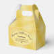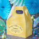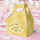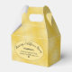 Manuscrito de script no centro de uma forma oval com texto personalizado para o apicultor ou nome de negócios apiário e informações de contato para anunciar sua marca no ponto de venda para um mercado de fazendeiros ou feira de laranja. A Caixa Gable ajustado dois 4 oz. Mini Mason Storage Jars (aproximadamente 2 pol redonda x 3,5 pol de altura cada). Enrole seus produtos de mel com nosso papel de tecido para proteger frascos de vidro. Crie um conjunto de etiquetas e embalagens personalizadas para a sua empresa, contactando-nos com o link abaixo. ©dotpattern