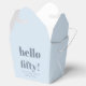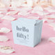 Esta caixa de lembrança para festa apresenta um fundo azul claro suave com "hello fifty!" em letras grandes e negrito na frente, junto com o nome do homenageado, data do evento e local em letras cursivas e maiúsculas espaçadas abaixo. A paleta limpa de azul e cinza dá um toque moderno e sofisticado que funciona lindamente para uma celebração de aniversário marcante. Uma ótima escolha para uma lembrança de aniversário de 50 anos ou presente para convidados.