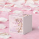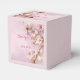 Caixas de favores de cereja rosa floridas com texto personalizável - você pode adicionar o nome da noiva e do noivo e a data do casamento, impressas em fundo rosa