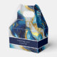 Uma caixa de favoritos de casamento com ouro falso, design azul e branco marmoreado.