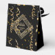 Esta caixa de festa de formatura moderna personalizada é elegante em preto e ouro com uma falsa brilha de ouro, confete e correias de vidro design. Você pode personalizar o ano da graduação e o nome do formando. Diz Parabéns e você também pode mudar isso para outra coisa, se quiser.