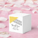 Moderna e moderna distribuição Geométrica Stripe Favor Caixas com triângulo amarelo e sotaque fino. Essas caixas simples, mas elegantes, são configuradas para serem facilmente personalizadas com suas informações de casamento. Localize mais opções de personalização clicando em Personalizar.