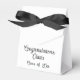 As Caixas de Favor de Tent Personalizadas vêm com sua escolha de fita preta, branca, rosa ou roxa. Você pode personalizá-lo para dizer o que quiser com sua escolha de fonte, cor de fonte, etc. Outros estilos de caixa de favoritos estão disponíveis.