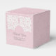 Caixas de favores Elegantes, simples e sofisticadas, com rendas brancas, sobre um fundo de papel vintage faux de rosa claro. Estas caixas clássicas e na moda são perfeitas para um casamento rústico. Fácil de personalizar com seus detalhes de casamento. Clique em "Personalizar" para encontrar mais opções de personalização.
