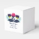 Caixas de presente de casamento modernas e elegantes com uma variedade colorida de folhagens escuras azuis e pervinca e flores estilizadas magenta rosa e roxo. Essas caixas chiques e modernas podem ser personalizadas com os detalhes do seu casamento. Para mais opções de personalização, clique no botão Personalize.