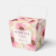 Belas flores cor-de-rosa e creme em aquarela e folhas elegantes cobrem essas caixas de lembrancinhas estilo takeout, perfeitas para chás de noiva, chás de bebê e aniversários. ITENS COINCIDENTES em nossa loja.