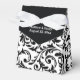 Estas caixas elegantes apresentam um design de molho floral. Preto e branco adiciona um toque formal. Personalize essas caixas de favor com seus nomes e data de casamento. Estas caixas de favor também funcionam bem para os chás de panela.