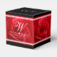 Celebre o 15, 26 ou 36 anos de casamento em estilo com esta caixa de favor comemorativa! A escrita branca elegante e a inscrição serif em um fundo de rosa vermelha romântico revestido com bares brancos e negros acrescentam um toque memorável para esta ocasião especial e marco (extraordinário). Personalize com os nomes de casal felizes, adicione um inicial ou monograma para o sobrenome e adicione datas para o aniversário de rosa. Mensagens personalizadas podem ser adicionadas aos painéis superior e lateral. Design © W.H. Sim. Mais informações em zazzle.com/expressionsoccasions