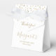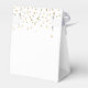 Obrigados convidados com essas caixas de favor elegantes, com confete triangular de ouro e as palavras "Obrigado!" em um roteiro dourado sobre fundo branco. Personalize-os com o nome de convidado de honra em um roteiro dourado, juntamente com a ocasião e a data em fontes douradas sans serif.