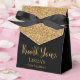 Este fabuloso e moderno 75º aniversário, Dourado Glitter Black Obrigado a uma caixa com brilho de ouro brilhante, Obrigado em uma letra de texto de tendência e o nome da aniversariante em ouro com um elegante arco preto seria perfeito para o seu evento. Seria excelente para uma estação de doces, em uma obrigado que você mesa de presentes, ou em cada lugar com um favor. Certifique-se de pedir o suficiente para todos os seus convidados.