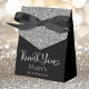Este fabuloso e moderno 90 de Aniversário Silver Glitter Black Obrigado por uma caixa com brilho prateado cintilante, Obrigado em uma letra de roteiro e o nome da aniversária em prata com um elegante arco preto seria perfeito para o seu evento. Seria excelente para uma estação de doces, em uma obrigado que você mesa de presentes, ou em cada lugar com um favor. Certifique-se de pedir o suficiente para todos os seus convidados.