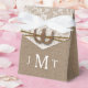 Celebre em estilo com essas elegantes e trendentes caixas de favoritos para casamento. O design apresenta duas ferraduras de encaixe rústicas em gêmeo com burlap & lace, o que é perfeito para qualquer país ou festa de casamento do celeiro. O design é fácil de personalizar com suas próprias iniciais de monograma e sua família e amigos ficarão entusiasmados quando receberem essas caixas de favor fabulosas. Itens correspondentes podem ser encontrados na coleção.