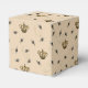 Estas Caixas de Favor de Abehas Chic e Rainha Abelha Coroa Dourada apresentam abelhas zumbindo desenhadas à mão em meio a coroas douradas reais contra um elegante fundo creme.