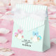 Presentes de favor de chuvada de bebê gêmeos com design de menina e menino gêmeos em tons doces de rosa e azul. Para personalizar, edite o texto para adicionar o nome da futura mãe.