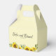 Caixas personalizadas de girassol foram favorecidas para um casamento de flor silvestre, com um esquema de cor amarela. Estas caixas encantadoras podem ser personalizadas com os nomes do casal feliz e a data do casamento, acrescentando um toque pessoal ao seu dia especial. Perfeito para segurar pequenos presentes ou guloseimas, essas caixas de favores complementarão lindamente suas decorações de casamentos de girassol e flor silvestre. A cor amarela vibrante evoca o calor e a alegria de uma celebração de casamento de verão.