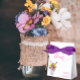 O amor está florescendo! Coleção de casamentos florais vibrantes com um buquê num vaso de mármore rodeado por borboletas e acompanhado por tipografia de guião fuchsia.
