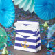 Caixinha De Lembrancinhas Âncora Dourada em faixas azuis