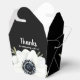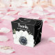 As caixas de favoritos destacam as elegantes flores brancas e pretas de anêmonas e folhas em uma caixa preta de fundo com seu obrigado pessoal, que você envia na frente e seus nomes na parte inferior. CORRESPONDENTE a itens na nossa coleção.