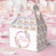 Uma bela caixa de favorecimento de festa de aniversário doce com uma estrutura brilhante cor-de-rosa, púrpura e dourada, com arranjos florais. As palavras podem ser alteradas para se adequarem aos seus próprios detalhes ou requisitos