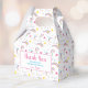 Um obrigado de aniversário de unicórnio personalizado bonito você favorece as caixas de presentes. Este divertido design personalizado apresenta uma doce ilustração de unicórnio, estrelas e um arco-íris. Cores cor-de-rosa, roxo, azul e amarelo com um toque de brilho dourado sujo.