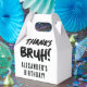 Uma caixa de adversários temáticos "Bruh", usando tipografia legal. Um adolescente personalizado, meninos adolescentes, faz um favor à caixa de design perfeito para qualquer tema de festa de aniversário. Personalize esta caixa de favoritos de aniversário "Bruh" com seu próprio texto e torne-a sua!