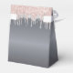 Elegante, clássico, glamouroso e feminino para um favorito de festa de aniversário 50ª (ou qualquer idade). Um fundo de olhar mal prateado. Com o texto: 50º Aniversário e Obrigado Escreveram com um moderno estilo escrito à mão. Decorado com rosa dourado falso, cor-de-rosa e cintilação fina prateada, aparência de pingar tinta. Personalize e adicione um nome e uma data. Texto cor-de-rosa esbranquiçado.