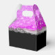 Adicione um pouco de brilho à sua comemoração com o nosso nome de Aniversário de Prata Púrpura Roxa Negra. Obrigado Caixas de Favor! Essas caixas de na moda apresentam um design preto elegante, acentuado com brilho prateado roxo e personalizado com seu nome para um toque personalizado. Perfeito para favoritos para festas, eles combinam elegância com um pouco de brilho. Feitas com materiais de alta qualidade, essas caixas de favoritos são resistentes e atraentes, fazer-as da forma perfeita de obrigado de estilo.