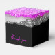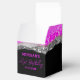 Adicione um pouco de brilho à sua comemoração com o nosso nome de Aniversário de Prata Púrpura Roxa Negra. Obrigado Caixas de Favor! Essas caixas de na moda apresentam um design preto elegante, acentuado com brilho prateado roxo e personalizado com seu nome para um toque personalizado. Perfeito para favoritos para festas, eles combinam elegância com um pouco de brilho. Feitas com materiais de alta qualidade, essas caixas de favoritos são resistentes e atraentes, fazer-as da forma perfeita de obrigado de estilo.