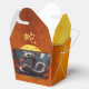 Cobra chinês em uma paisagem de casas e jardins tradicionais chineses (modelo n°1) com fundo ouro e pequenas fronteiras que você pode remover, como a imagem de "madeira", que corresponde ao elemento ligado à Cobra de 2025. Caixa de favoritos de design on take-out com pequenos textos personalizáveis : saudação em chinês + "Feliz Ano Novo Chinês" + "Ano do Cobra" + 2025 + mensagem para personalizar e nome da família.