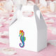 Articulação artificial, brilhante, arco-íris, cavalo de mar poligonal sobre fundo branco. Tatuagem brilhante.